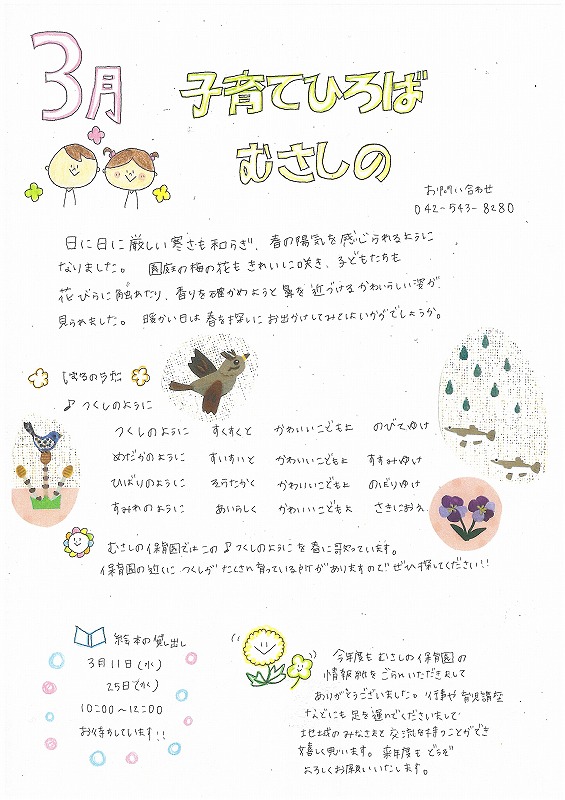 3月 子育てひろば“むさしの”を更新しました。