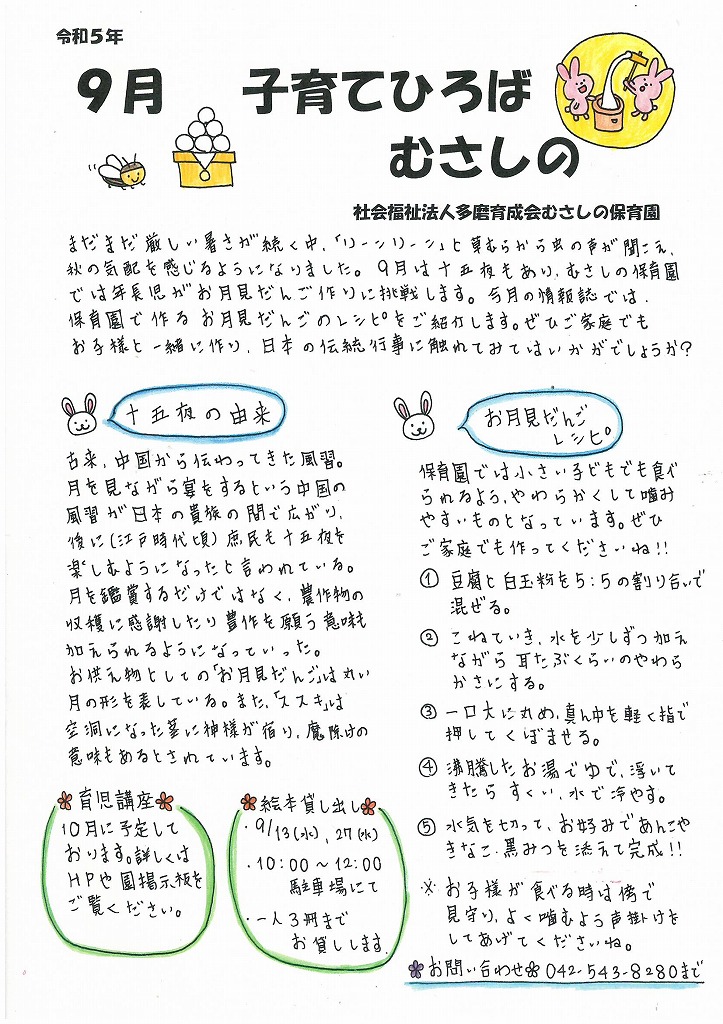 また来月は園行事『おみせやさんごっこ』を行います。是非、むさしの保育園に遊びに来ていただけたらと思います。よろしくお願いいたします。